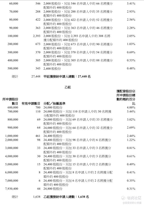 下面这个是公开资料的乙组官方披露的中签24800股名单: