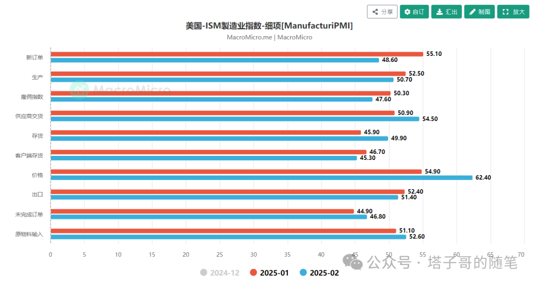美国2月制造业PMI和小非农低于预期,贸易逆差史上最大,服务业PMI高于预期,亚特兰大联储预期美国一季度GDP负增长2.4%。整体来看,一季度美国GDP料明显降温,但后续随着美联储降息和贸易恢复正常,美经济大概率出现反弹。