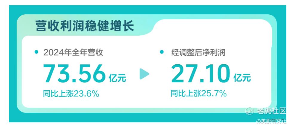 利润方面公司完成预期目标。2024年取得净利润15.67亿元,同比上涨42.6%。非通用会计准则下,全年公司经调整后净利润达到27.10亿元,同比上涨25.7%。