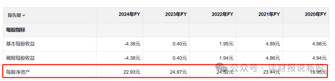 2020年每股净资产19.95元,2024年每股净资产22.93元,则五年年复合增长率为2.8%