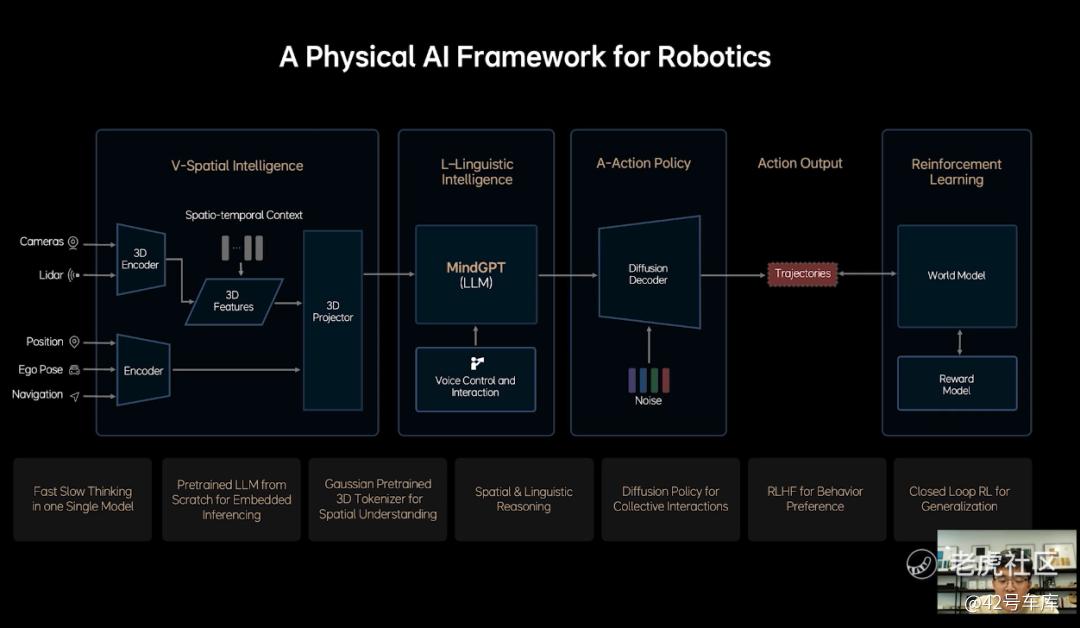 之所以能够实现这样的场景,据贾鹏介绍,理想依靠的是 VLA 技术,也就是视觉语言动作模型(Vision-Language-Action Model),而理想则把自己的 VLA 技术称作 MindVLA。