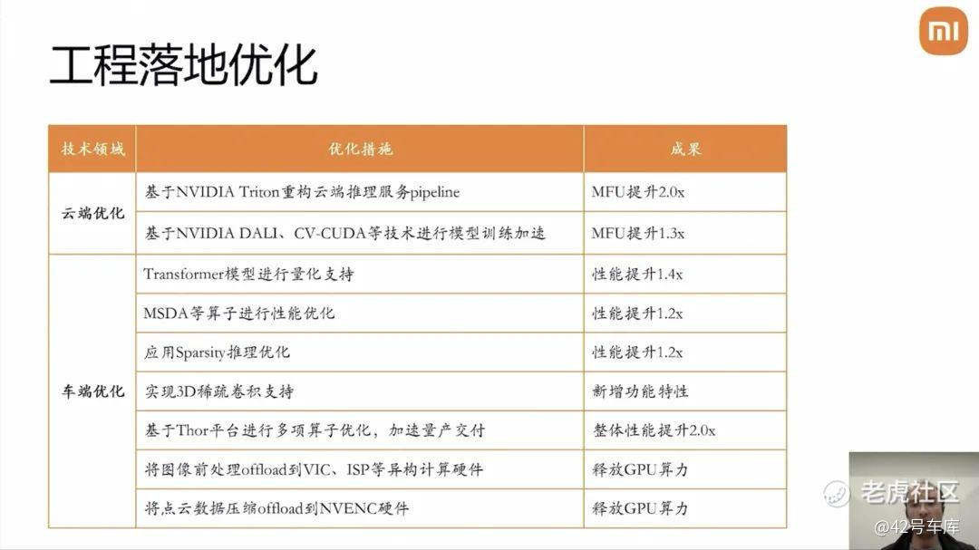 在工程落地上,小米与英伟达在云端、车端也进行了大量落地优化。
