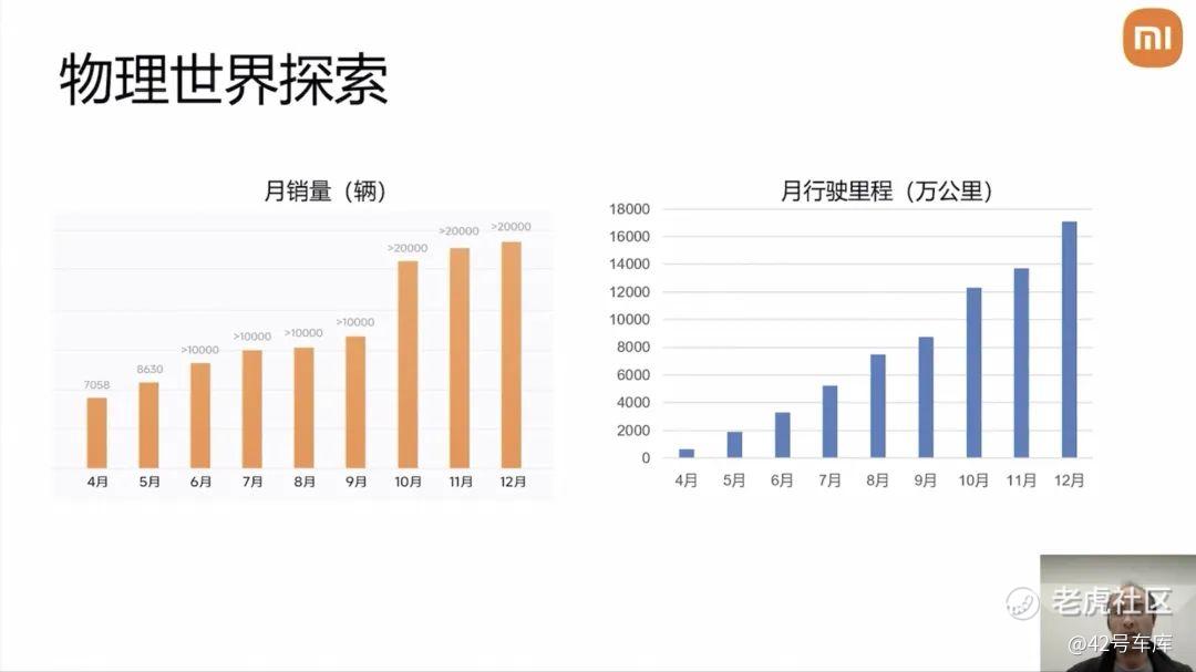 去年 3 月交付之后,目前参与物理世界探索的车队规模已经超过 18 万辆(今天下午小米汽车宣布交付已经突破 20 万),同时还在以每月 2 万辆的速度攀升。