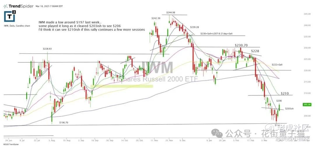IWM 上周在 197 附近触底……一些人做多,当它突破 203 看到 206 时参与交易。我认为如果这一反弹再持续几天,有望达到 210 附近。