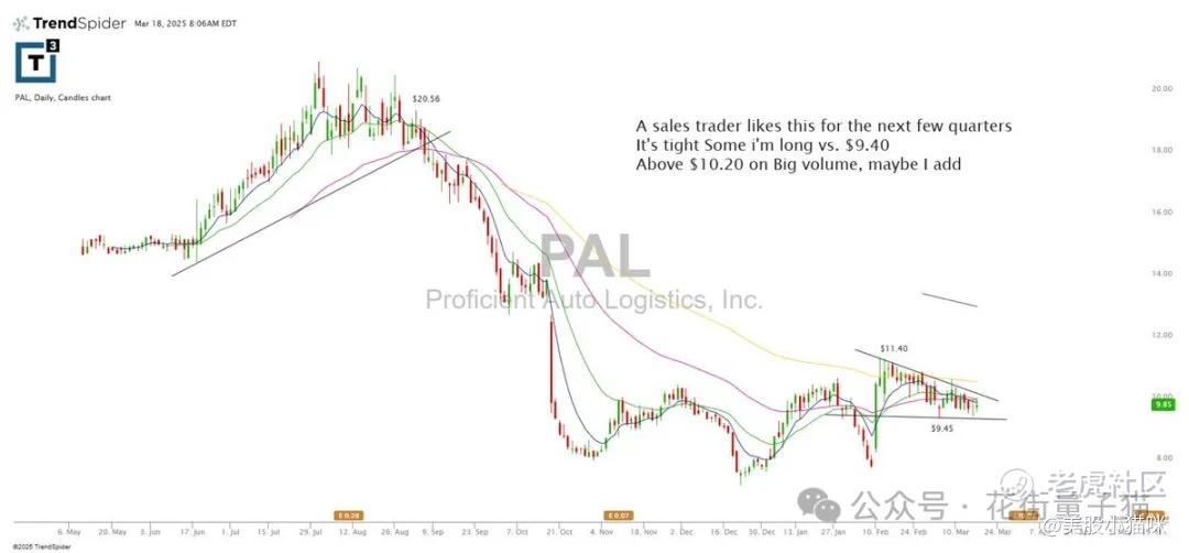 一位销售交易员看好未来几个季度的表现。走势较为紧凑,我在9.40美元附近持有部分仓位。如果在大成交量下突破10.20美元,或许会加仓。