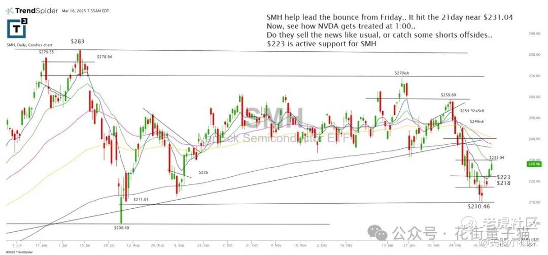SMH 在上周五带动反弹,它在 21 日均线附近触及 $231.04,现在看看英伟达今天市场如何反应,他们是否会像往常一样卖出新闻,或者吸引空头回补,$223 是 SMH 的关键支撑位。