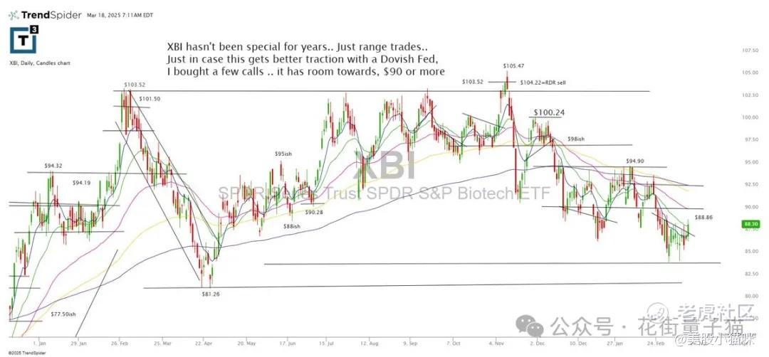XBI 多年来表现一般……只是区间交易……以防美联储更偏鸽派,我买了一些看涨期权……它有向 90 或更高移动的空间。