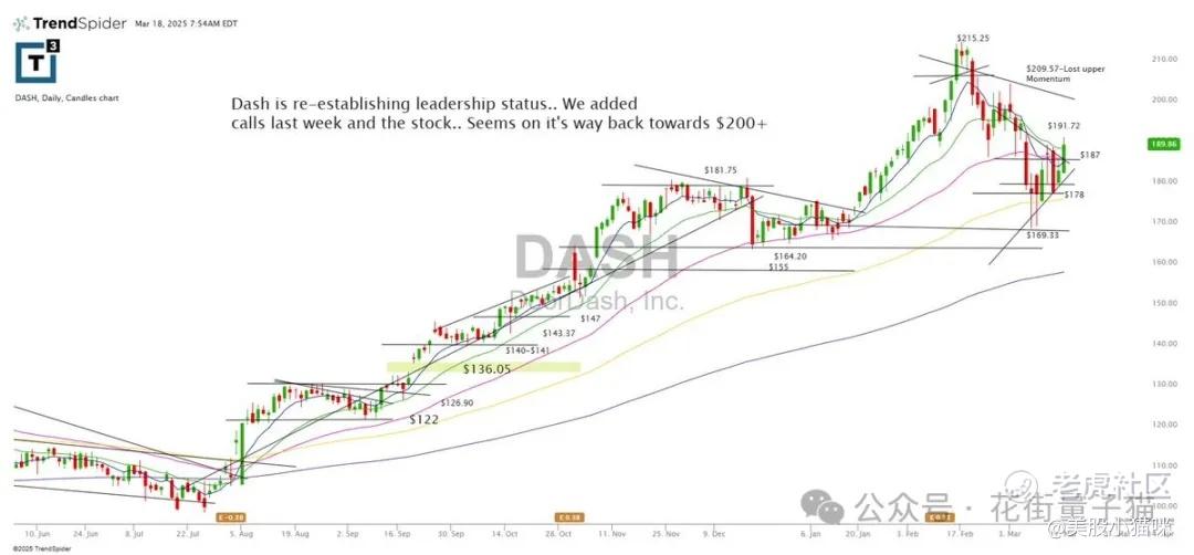 DASH 正在重新确立领导地位,我们上周加仓了期权和现股,看起来它正在向 $200+ 迈进。