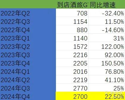 到店酒旅GTV增速大约22.5%,四季度规模约2700亿,全年约9705亿,同比增长36.1%,未达到年初万亿规模的预期。