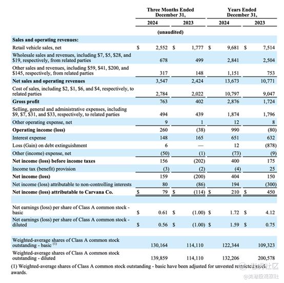 现在,让我们更详细地回顾Carvana最新的季度业绩。第四季度财报摘要如下: