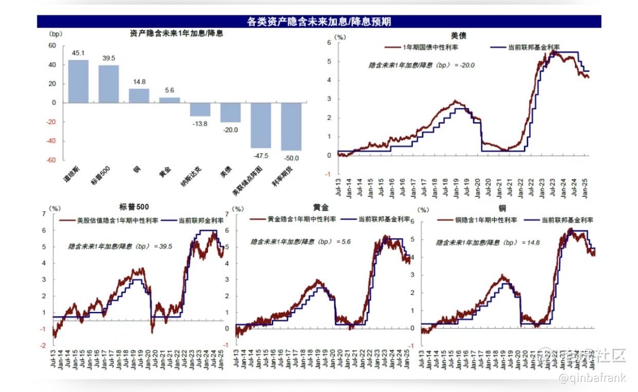 中金的测算各类资产计入的降息预期比美联储本周点阵图(全年两次)更为鹰派 。