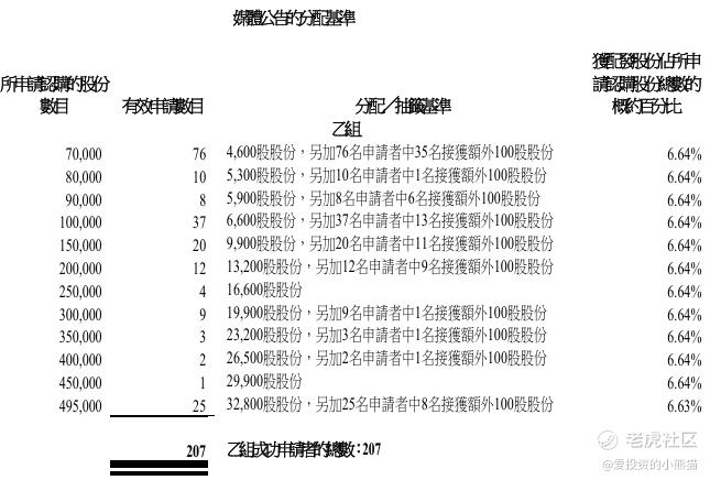 下面这个是公开资料的乙组官方披露的顶头槌认购中签名单:
