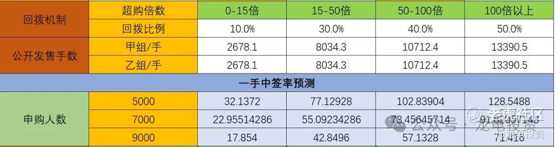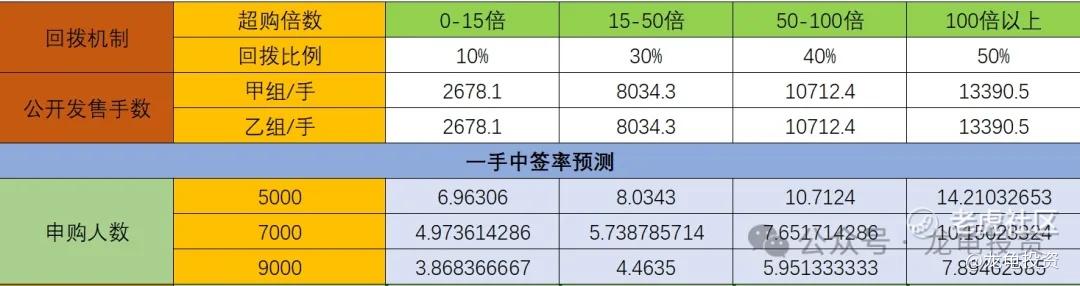 公司全球发售股数5356.2万股,每手股数1000股,截至发稿,超购5.74倍,新规会有一定影响,但小票回拨30%可能性较大,假设最终回拨30%,甲乙组各8034.3手,预计5000-9000人参与,一手中签率40%左右,申购10手稳一手