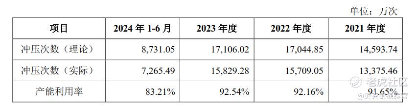 据招股书注册版,泰鸿万立产能利用率长期维持在9成左右,2024年前六个月,公司产能利用率下降至83.21%。