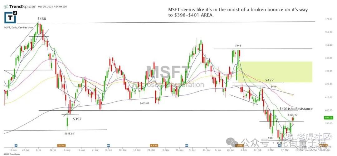 MSFT 目前处于一次断裂反弹的过程中,目标是 $398-$401 区域。