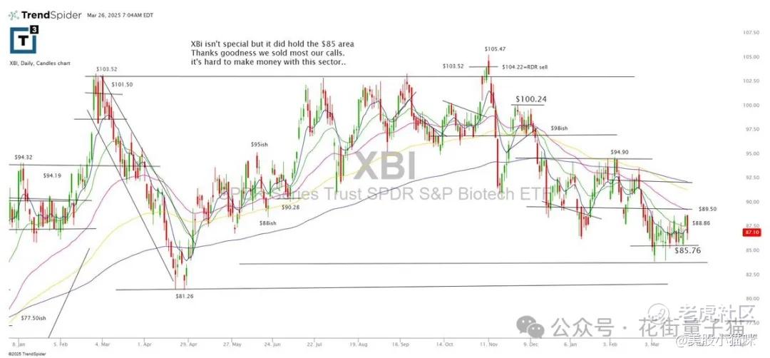 XBI没有什么特别的,但确实守住了85美元区域。幸好我们卖掉了大部分看涨期权。这个板块很难赚钱……