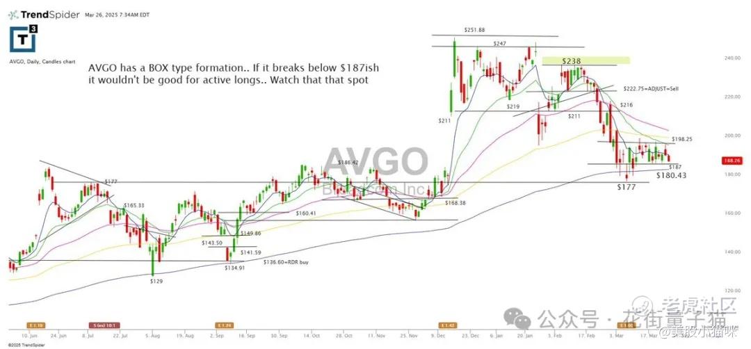 AVGO 形成了一个“箱体”形态……如果跌破 $187 附近,对激进多头就不利了……注意这个点位。