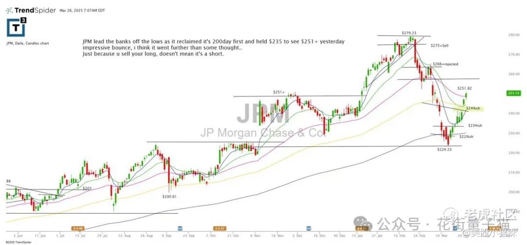 JPM带领银行股从低点反弹,率先收复200日均线,并守住了235美元,昨天反弹至251+,表现令人惊讶,我认为它的表现超出了部分人的预期。只是你卖掉了多头,并不意味着它是个空头。