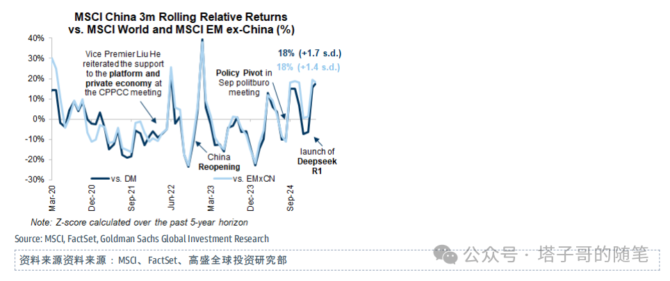 高盛指出,近期中国市场持续大涨,堪比2022年底的放开,2018年底的反转,以及924行情。