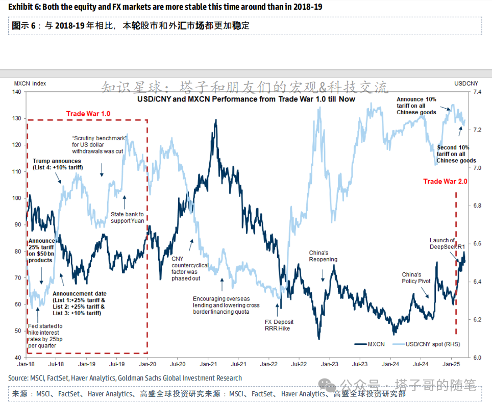 和之前那次贸易战比起来,本次股市外汇的表现都比较平稳。