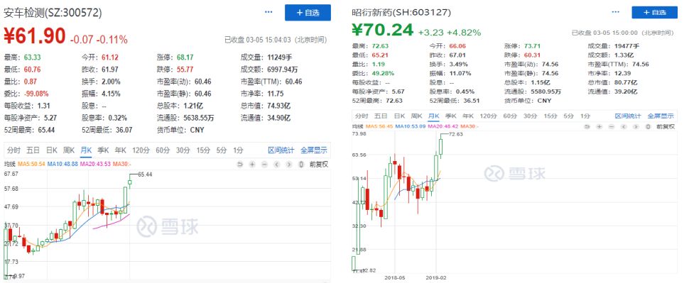 而且,这些公司里,会有继续新高,走出大牛行情的股票的。在业绩暴增+次新的光环之下,再带上热门的行业概念,涨幅空间可以去到很大,如之前的康泰生物。