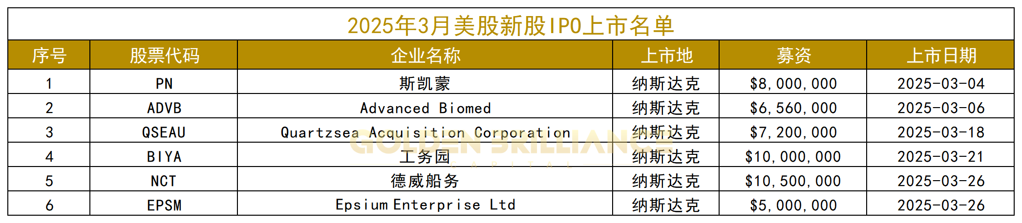 美股IPO动态|2025年3月美股IPO上市情况汇总