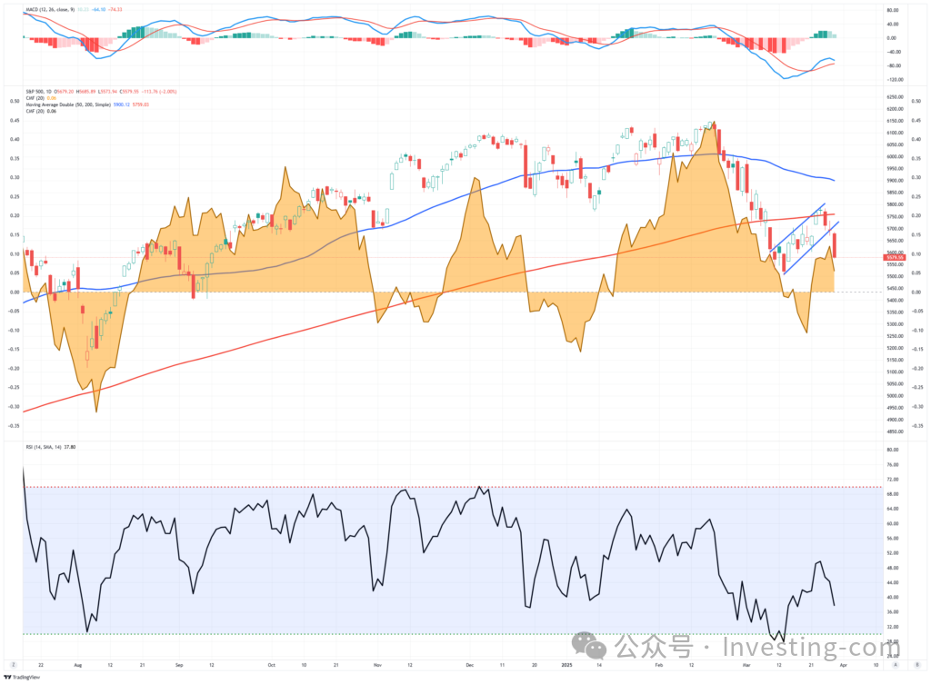 “尽管特朗普的关税政策和各种利淡消息主导投资气氛,但我们必须明白市场调整乃常态。市场从高位回落约9%,这类调整过去屡见不鲜。未必意味着较大规模的调整即将展开,反而暗示市场或会技术性反弹,以纾缓目前极度超卖的状况。从技术指标可见,MACD和相对强弱指数已降至2022年10月低位的水平。同时,市场已从该低位反弹完成23.6%的回调,为反弹提供了支持。”