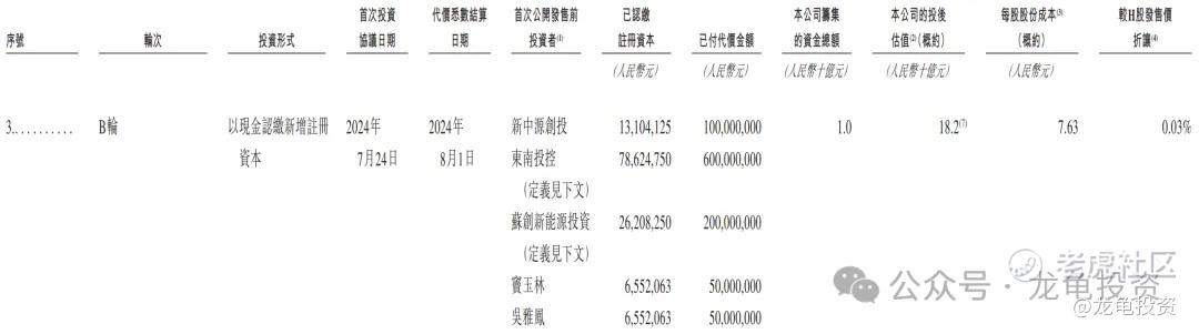 公司公开发售前完成两轮融资,B轮融资完成于2024年8月,投资金额10亿人民币,投资后估值182亿人民币,约合193.98亿港元,每股成本7.63元人民币,较发售价折让0.03%,禁售期12个月。
