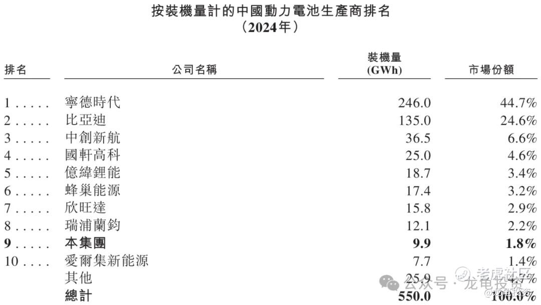 依据招股书得到,在动力电池生产商排名中,本公司排名第九,市场份额1.8%,属于前十大动力电池生产商未流水平,并且前十大动力电池生产商除了蜂巢能源和爱尔集新能源未上市外,其余公司都在各大交易所挂牌上市。
