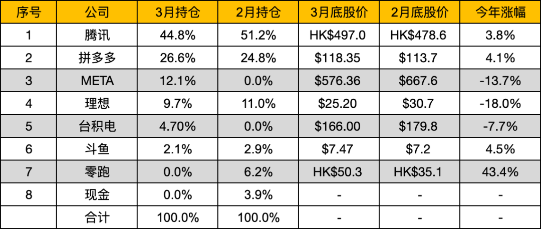 3月份的持仓变动主要跟上面有关: