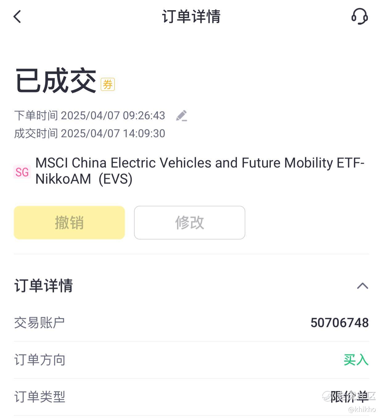 还加仓了一些 $MSCI China Electric Vehicles and Future Mobility ETF-NikkoAM(EVS.SI)$ ,这个是一个不错的ETF,成分股都是我比较喜欢的公司,理想,宁德时代,比亚迪, 蔚来等,这些公司的占比很大。我少少的加仓一些,没有动用杠杆。 只要抗过去这一波,应该可以吃到肉 [贱笑]