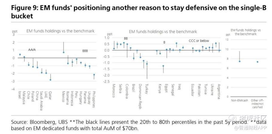 图 9:新兴市场基金的持仓情况是对单一 B 评级债券保持谨慎态度的另一个原因