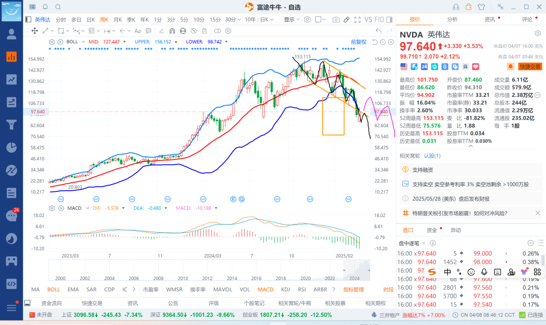 25-4-9 英伟达后续沿着日周boll带中上轨空