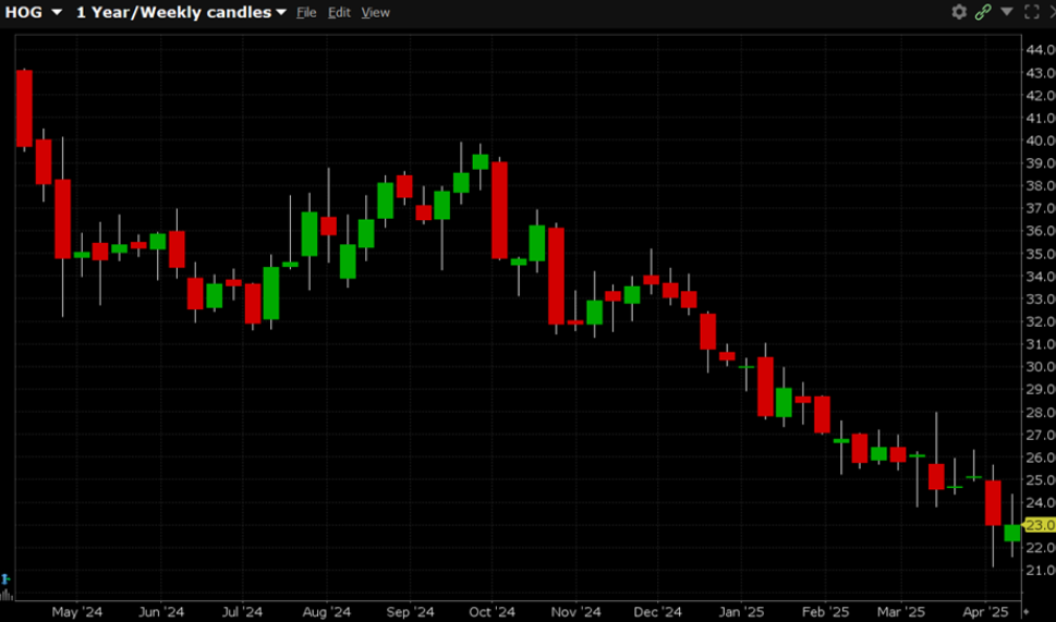 今天上午,5000份哈雷戴维森公司(股票代码:HOG)于2025年4月11日到期的看涨期权以多个价格成交,共计24份看涨期权在多处成交。