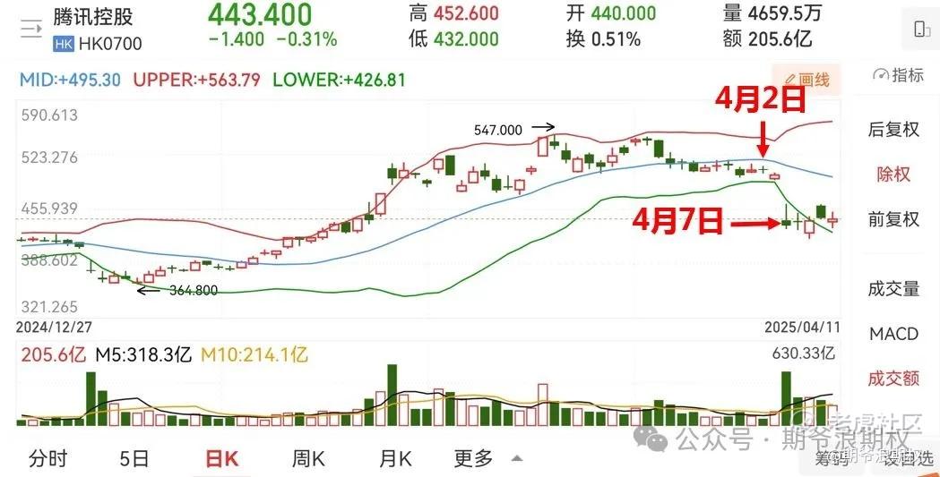 老粉都知道,富婆最喜欢的就是“港股股王”腾讯,接下来就以自己在腾讯这个标的上的实盘总结和交易思路,知无不言言无不尽地分享给大家,先看K线如下图: