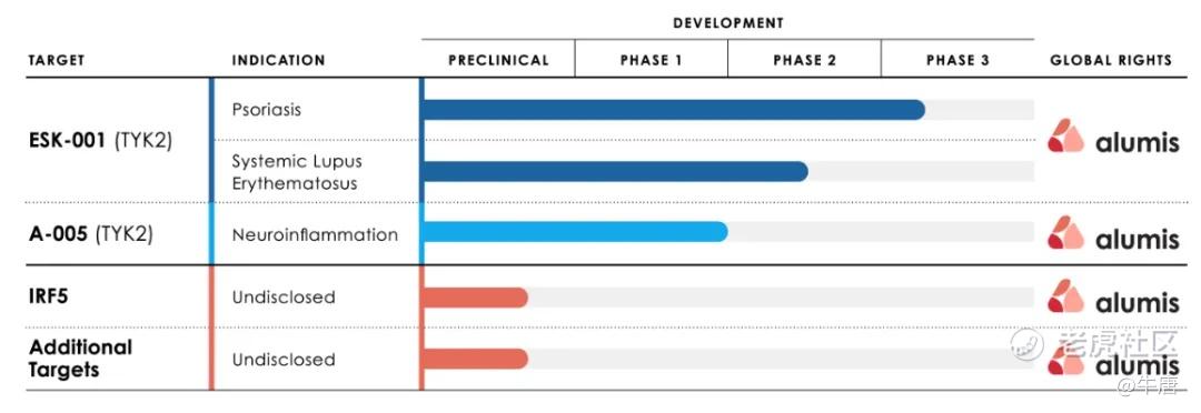 价值获得重估。仅仅一个日本区域的权益就卖出了1.9亿美元的价格,让市场看到了ESK-001的潜力,引发了市场对Alumis的价值的重估,尤其是作为上唯一一家上市的TYK2药物公司,拥有后期管线的Alumis在二级市场具有一定的稀缺性。