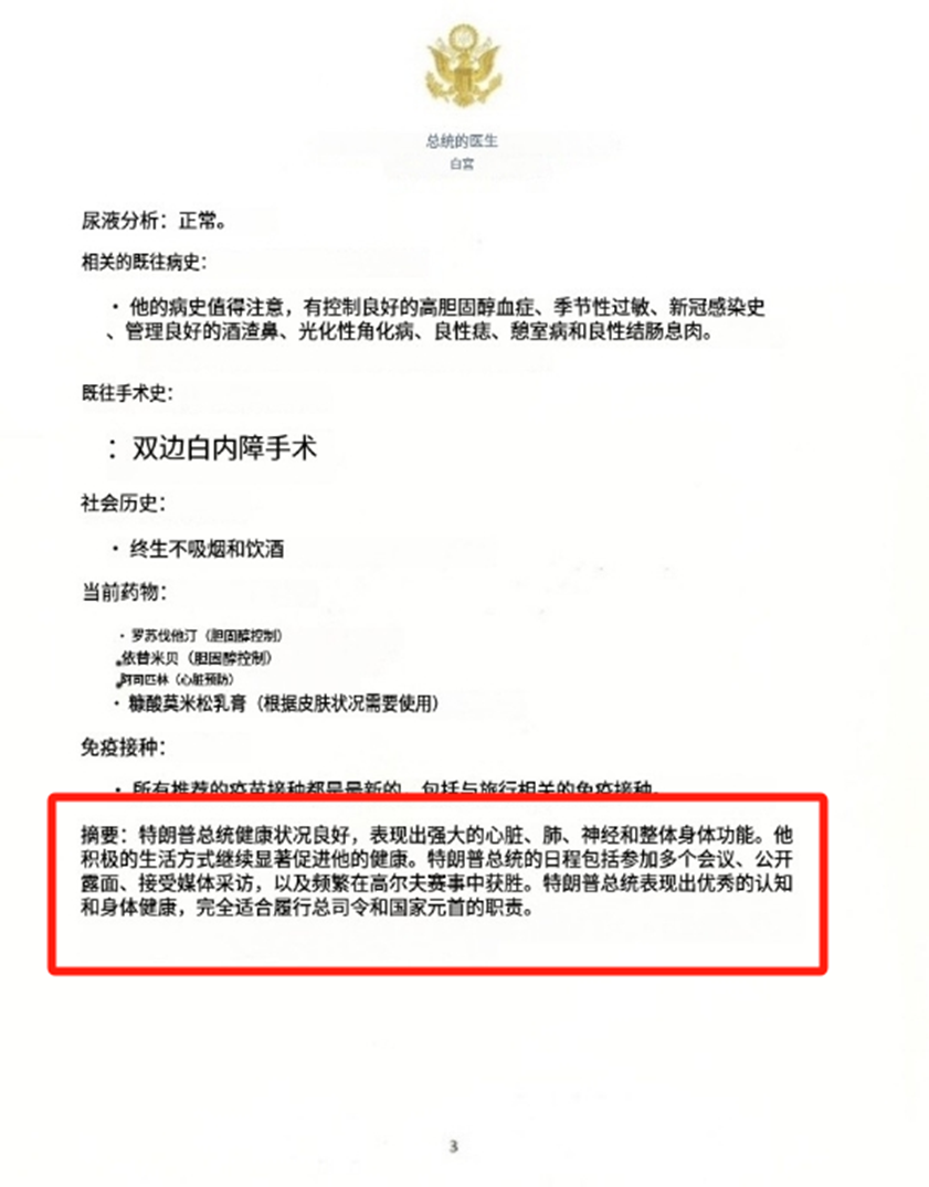 上周五特朗普进行了第二任期以来的首次体检,并且为了与拜登拉开差距,特别申明参加了一项认知测试,周日公布的结果显示状况极佳~