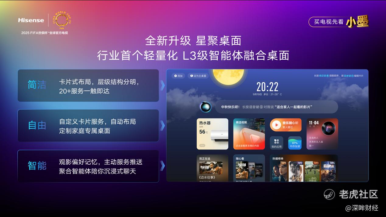 AI成为海信小墨E5Q Pro差异化竞争的关键,其搭载行业首个轻量化L3级智能体系统“星聚桌面”,支持个性化推荐与20+服务直达。18大智能体深度融合DeepSeek能力,构建了AI差异化竞争力:旅游一键生成打卡攻略;观赛场景实时预测赛事胜率与比分;游戏场景推送通关策略;多模态识屏、一键分屏等设计,让电视真正成为“懂所需、记所爱”的家庭智慧中枢。