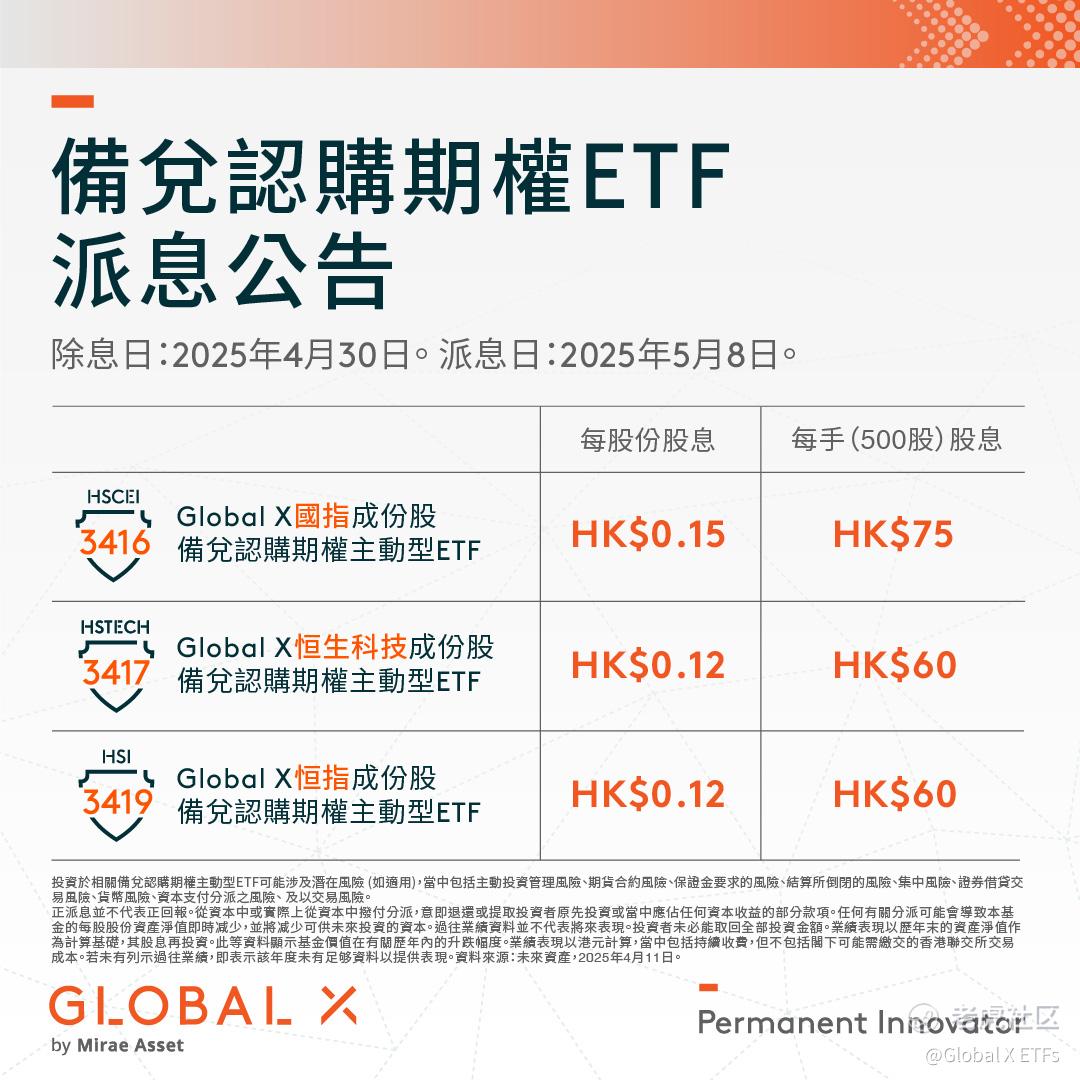 Global X 国指成份股备兑认购期权主动型ETF (3416) $A GX国指备兑(03416)$ Global X 恒生科技备兑认购期权主动型 ETF (3417) $AGX恒科备兑(03417)$ Global X 恒指成份股备兑认购期权主动型ETF(3419) $A GX恒指备兑(03419)$