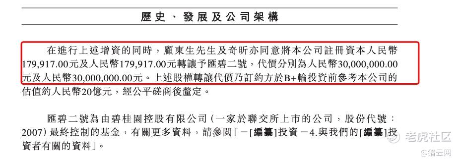 值得注意的是,在遇见小面2021年6月B+轮增资的同时,顾东生及奇昕以B+轮投资前遇见小面20亿元估值进行了部分股权转让,分别将公司注册资本179,917.00元及179,917.00元转让予汇碧二号,代价分别为3000万元及3000万元。