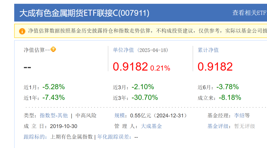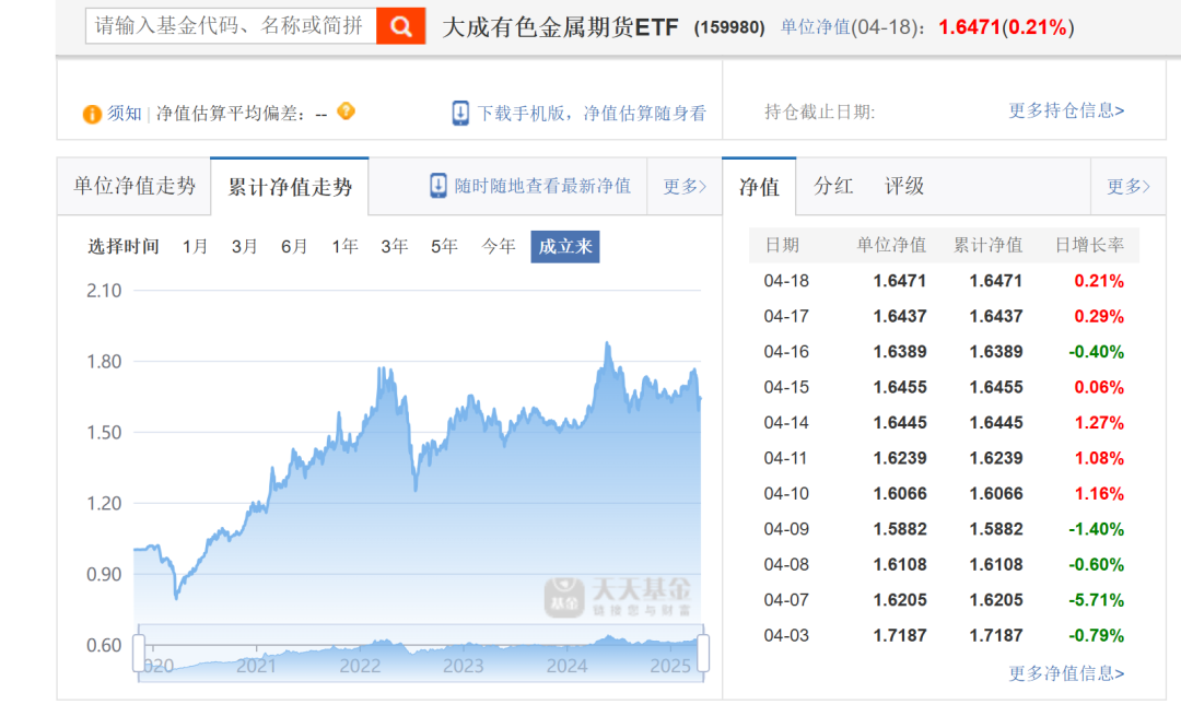 大成有色金属期货etf(159980)和这个期货的走势基本是一致。