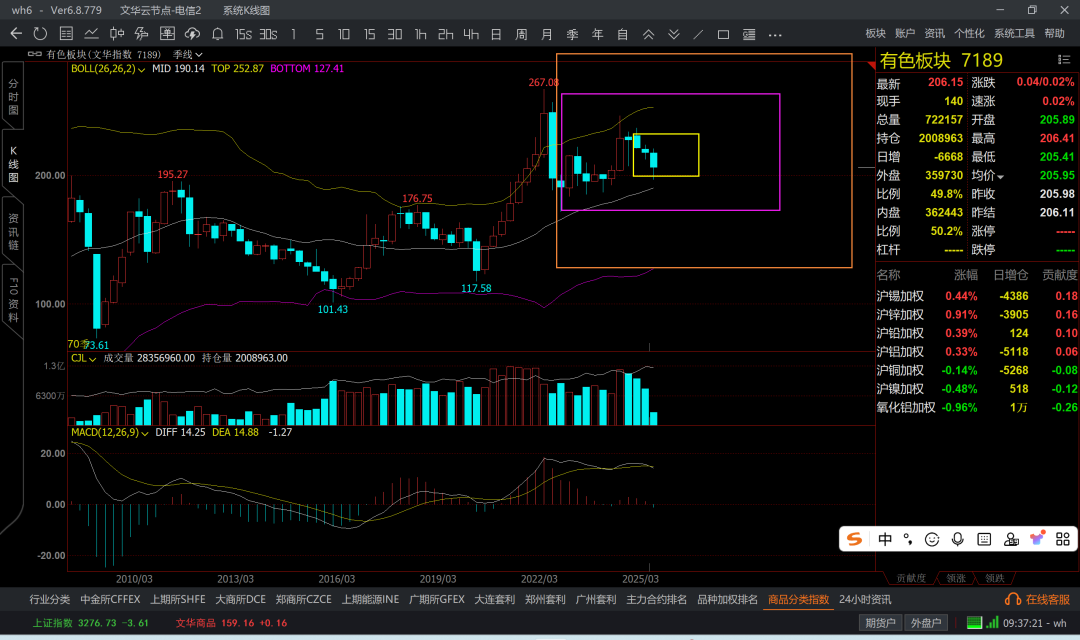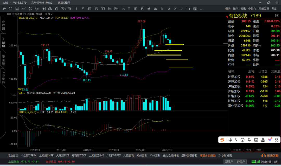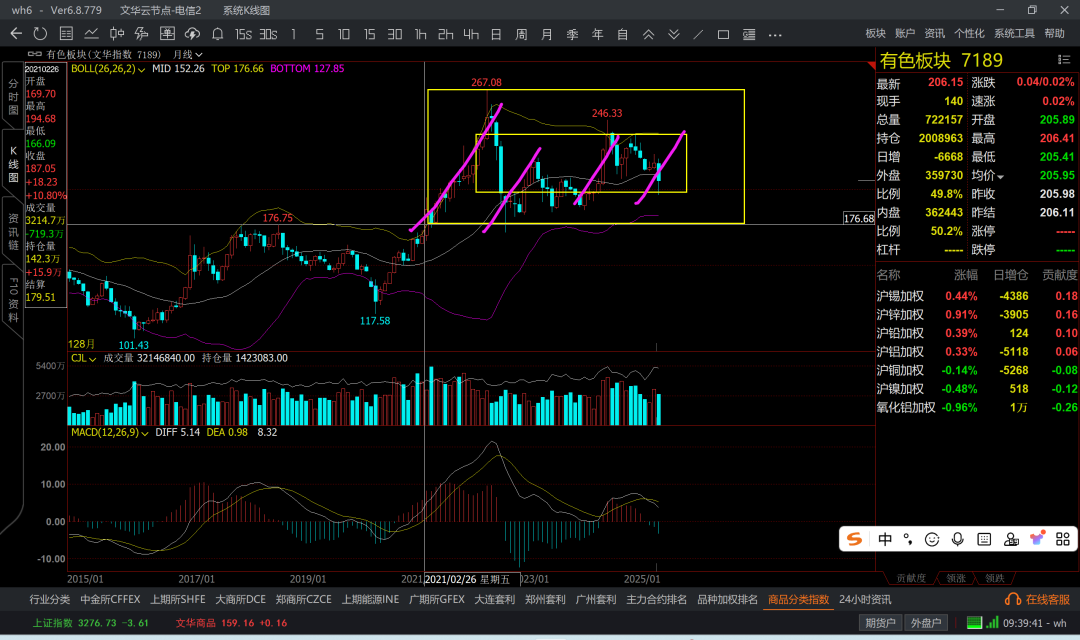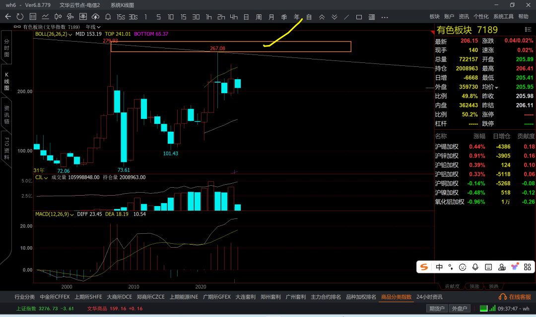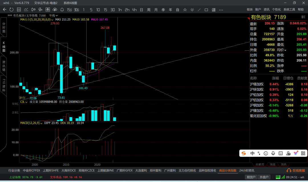 前面说过了黄金类,农产品豆类,能源类,现在就缺有色这块了,有色和放水和经济有关系,当然地缘政治等也会加大他的波动,但持续横盘了4年的时间,叠加现在货币开始重置,全球各地的冲突都会导致硬通货的资源会涨起来,而且买跌不买涨,网格化的玩法,还有就是级别刚突破的时候可以追一波,亦或者是给到非常底部的区域打完即可,其他的时候就是按节奏的低吸高抛和等待完全获利即可,根据商品的周期4-8年为一个单位,这样折算下来年化大概10-15%附近,也还算可以,要是碰到机会等还会加倍到年化20-30%附近,这样就很不错了,就看市场怎么给了,最差的底线都不会太差,那么还有什么好担心的呢,波动越大赚的就越多,核心就是买跌不买涨,敢跌就敢买,控制好整体的头寸,可以布局个5-10%头寸就差不多了,也就是每次买个1-2%头寸,当然了要是看好的人也可以自己放大个2-3倍,具体的根据自己的需求来做即可。
