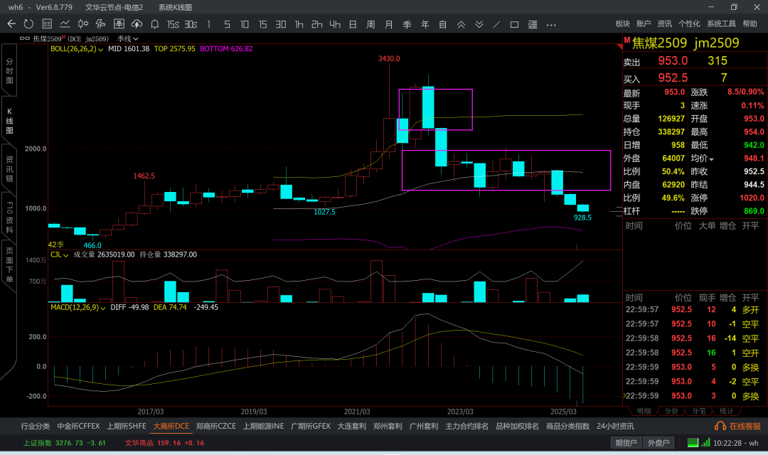 开始进入跌入第三个框框了,同时把jm2505的头寸慢慢移仓到09合约上来。