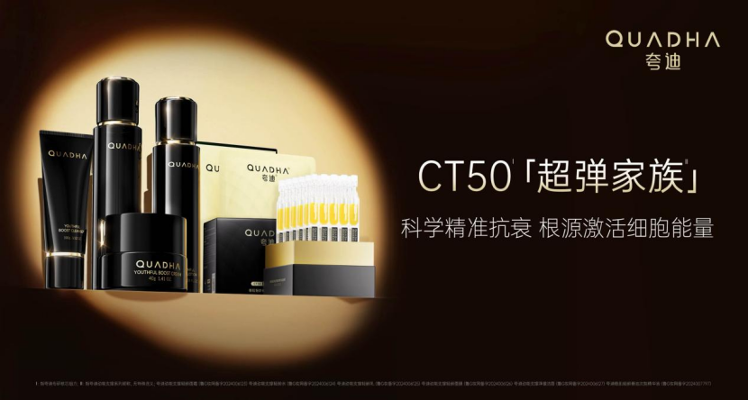 华熙生物旗下战略抗衰品牌夸迪,基于品牌冻龄·抗初老的定位,携手华熙生物再生医学研发中心以及诺贝尔奖得主兰迪·谢克曼团队,推出划时代产品“CT50超弹系列”,聚焦于细胞级精准抗衰,实现细胞级抗衰成果的护肤转化。