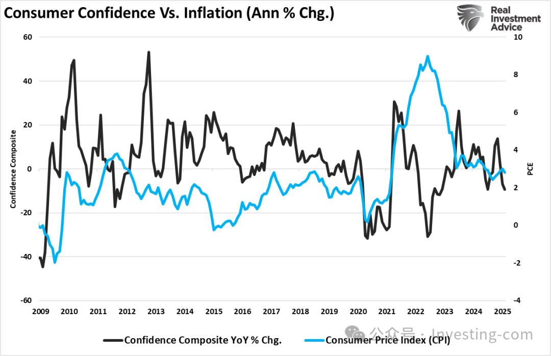 即使关税来袭,过去几年困扰美国的通胀风险可能正大幅下降,这似乎是个好消息,然而通胀风险骤降背后却是美国的坏消息:消费者信心骤降。