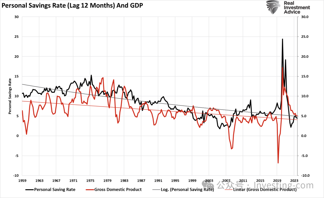大规模派发纾困金令家庭储蓄大增,衍生非自然需求。如图所示,这种“蟒蛇吞象”效应清晰可见。近两年,过剩流动资金已回复至原有增长轨道。鉴于经济增长一般滞后于储蓄回落约12个月,预计经济增长会持续放缓至2025年。这种“滞后效应”是探讨“通胀风险”的关键。