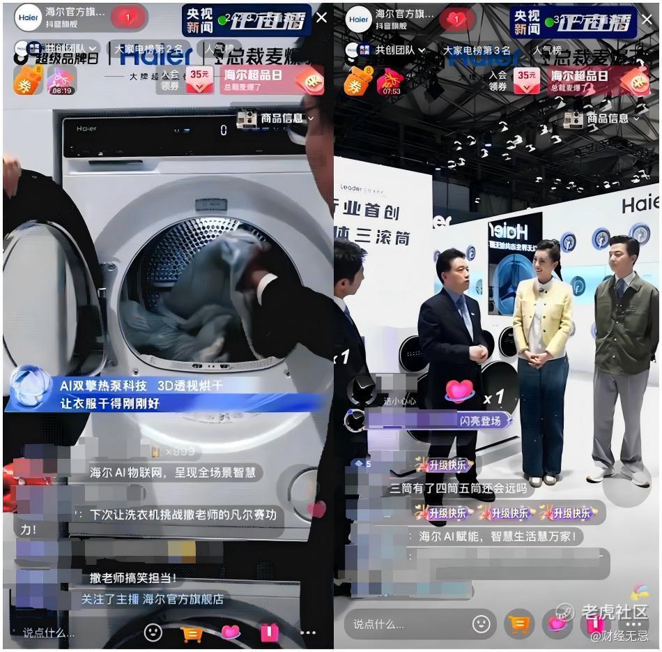 在行业顶级盛会AWE(中国家电及消费电子博览会)上,抖音电商携手格力、添可、科沃斯、MOVA等众品牌参展,打造线上线下联动营销事件。值得重点关注的是,海尔组织了一支“总裁团”,在央视知名主持人的陪伴下,带领观众沉浸式“云”逛展,通过现场科技体验和专业细致的讲解,点燃用户消费热情,实现销量爆发,带动品牌官方旗舰店成为大家电成交榜TOP1。