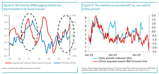 图 4:我们发现人民币走势滞后于财政刺激的改善