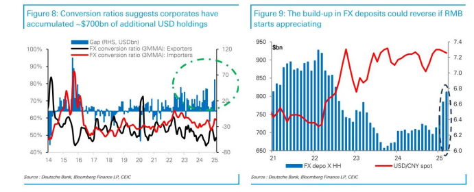 图 8:结汇比例显示企业额外积累了约 7000 亿美元的美元储备