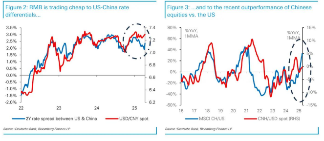 图 3:人民币兑近期中国股市相对美国股市的优异表现被低估